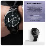 El reloj cuenta con una superficie negra que le da un aspecto fuerte y moderno. Con su diseño minimalista y esferas legibles, este reloj será el complemento perfecto para su look diario o su atuendo formal.