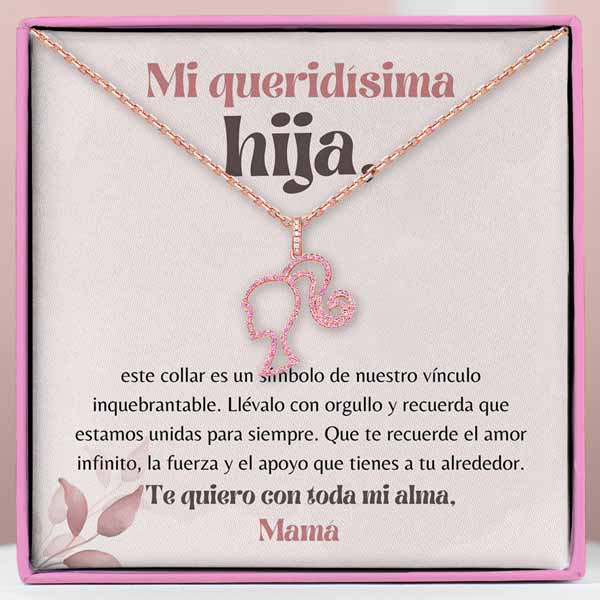Eleve su estilo con el exquisito collar Barbie de oro rosa, una impresionante pieza de joyería que combina elegancia y encanto atemporal. Elaborado con precisión y cuidado, este collar es el accesorio perfecto para complementar su gracia y belleza.