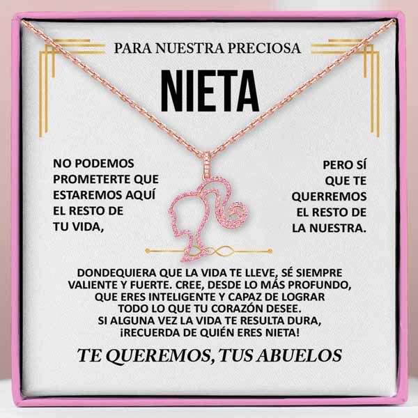 Eleve su estilo con el exquisito collar Barbie de oro rosa, una impresionante pieza de joyería que combina elegancia y encanto atemporal. Elaborado con precisión y cuidado, este collar es el accesorio perfecto para complementar su gracia y belleza.
