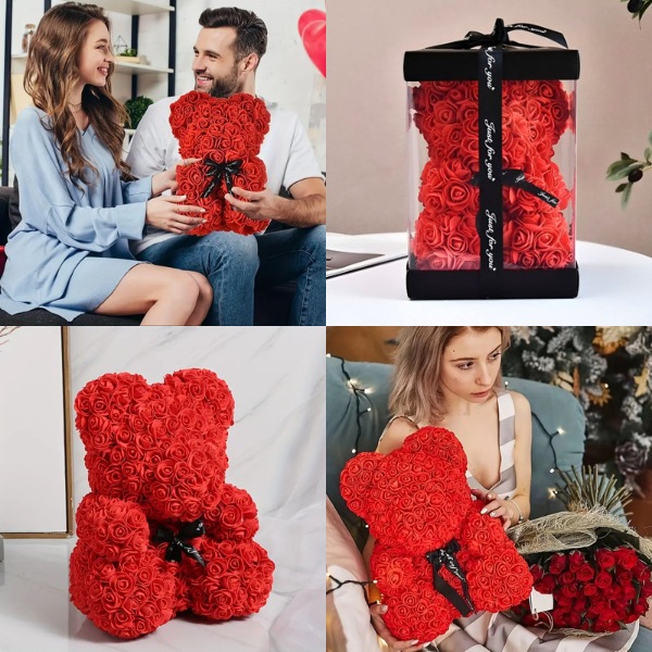🎁 Sorpréndela con un oso de peluche romántico hecho de rosas que no se marchitan.