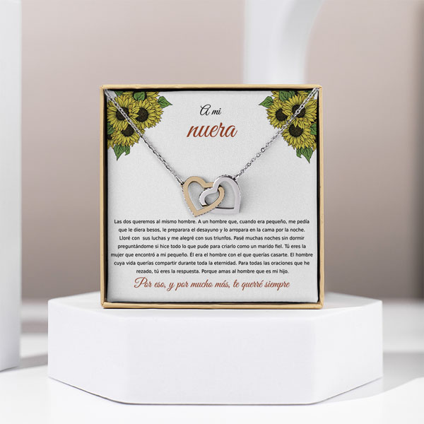 El collar representa un hermoso símbolo de amor que combina un diseño elegante y un profundo valor emocional. Con un motivo de dos corazones entrelazados, este collar representa la unión y el amor eterno, lo que lo convierte en el regalo perfecto para un ser querido.