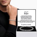 Colgante deslumbrante: adornando la pulsera hay un impresionante colgante con incrustaciones de cristales de circonita cúbica, que añade un toque de brillo y destello a su conjunto. El tamaño de 5 mm del colgante cautiva con su encanto sutil pero cautivador, haciendo una declaración audaz sin abrumar.